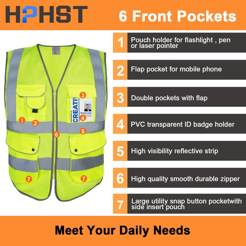 - Safety and reflective design – HPHST safety vests meet the reflective safety standards EN20471, with 2 inch wide reflective strips on the waist, chest, shoulders and back, which significantly improve safety at night and in special environments and reduce accidents. To provide you with a comprehensive range of protection.