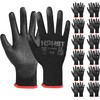 HPHST PU Coated Work Gloves, 12 Pairs Work Gloves for Men and Women, Non-Slip Assembly Gloves, Gardening Gloves with PU Coating for Builders, Mechanics, Black (Large)