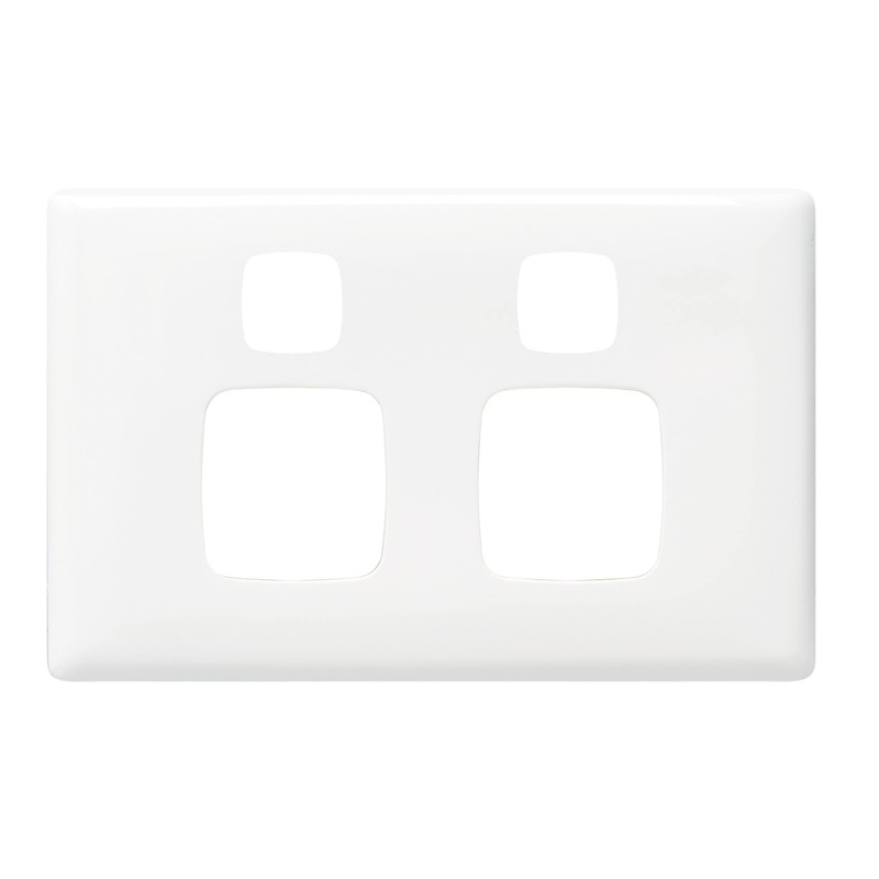 HPM Linea 2 Gang Double Powerpoint Horizontal Coverplate, White