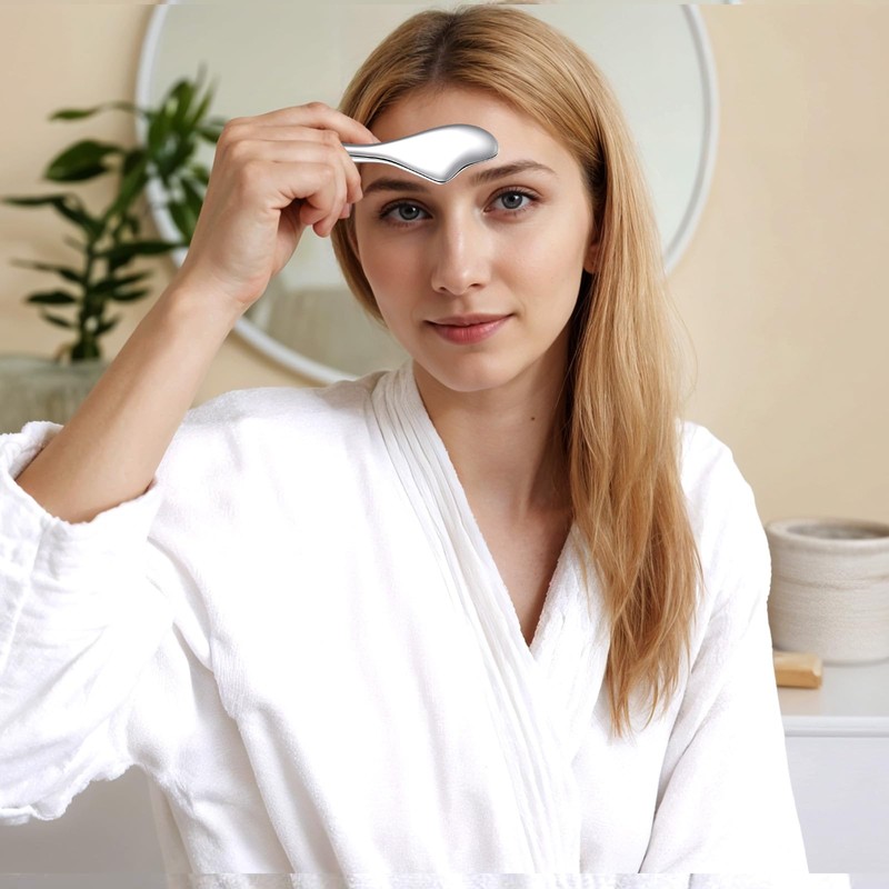 - 【Applicable Scenarios】Manual massage tool can be refrigerated or iced. You put the face spa tool in the refrigerator. After cleansing, apply serum and cream, and the cooling metal roller around the eyes, jawline and face with the scraping stick.