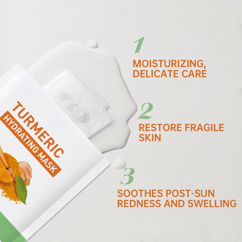 - Tiefenhydration: Diese Kurkuma-Maske maximiert das Eindringen in die Haut und die Absorption. Sie verbessert die Elastizität der Haut, glättet sichtbar feine Linien und Fältchen, stärkt die Hautbarriere und beugt der Hautalterung vor.