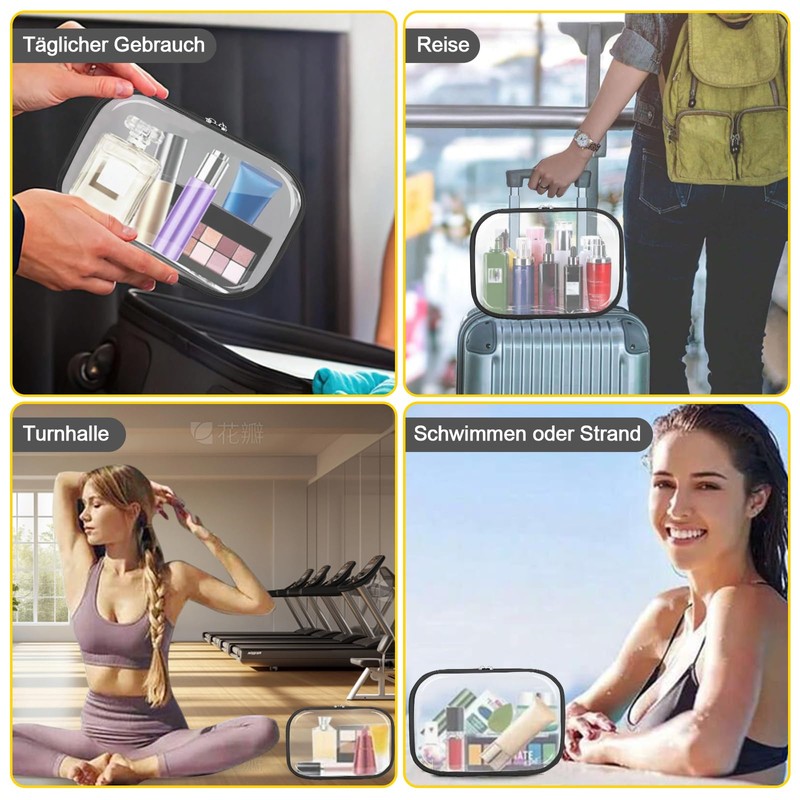 - [High-quality plastic material] This wash bag is made of high quality waterproof PVC plastic, which prevents moisture in the luggage. The double zip allows for full opening and makes packing easier. It is safe, odourless, durable and robust. The transparent shower bag is easy to clean, a damp cloth is enough to wipe clean.