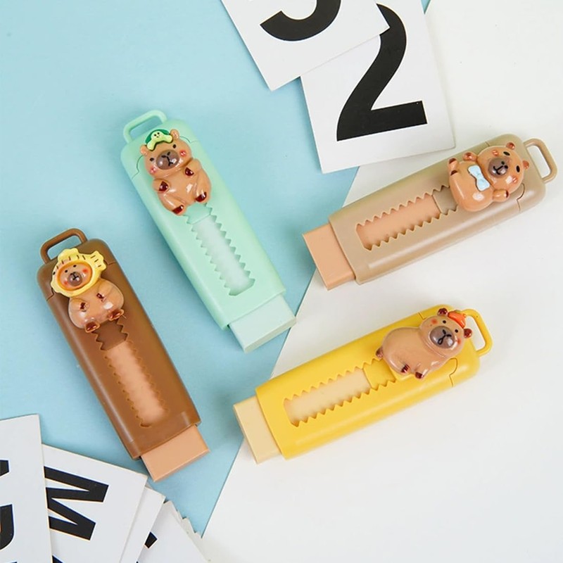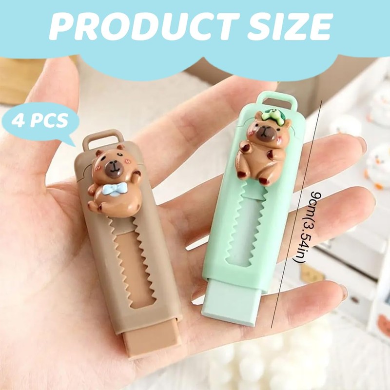 HQRKOTM 4 Pieces Capybara Retractable Eraser with 4 Pieces Eraser Refills, Retractable Eraser for Children, Students