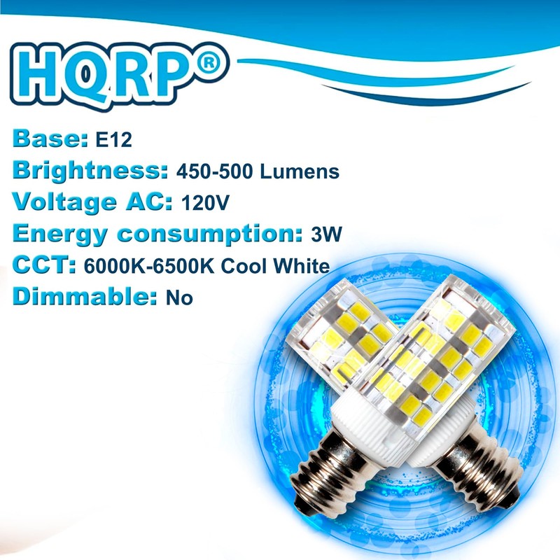 HQRP 2-Pack E12 110V LED Light Bulb Cool Compatible with GE General Electric WE4M305 Dryer Light Bulb Replacement