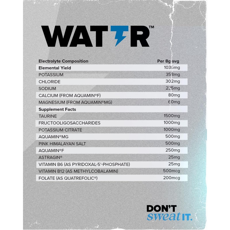 - ✅ WATTR has 1035mg of Electrolyte Blend so anyone with an active lifestyle maintains an electrolyte balance, increase in cellular hydration, reduction in tiredness & fatigue and to aid faster recovery