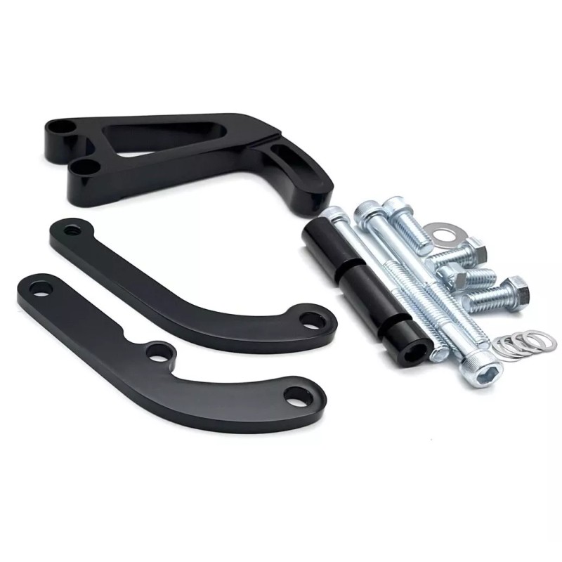 HRC SB Chevy Power Steering Bracket Long Water Pump SBC LWP PS Bracket Aluminum Blk