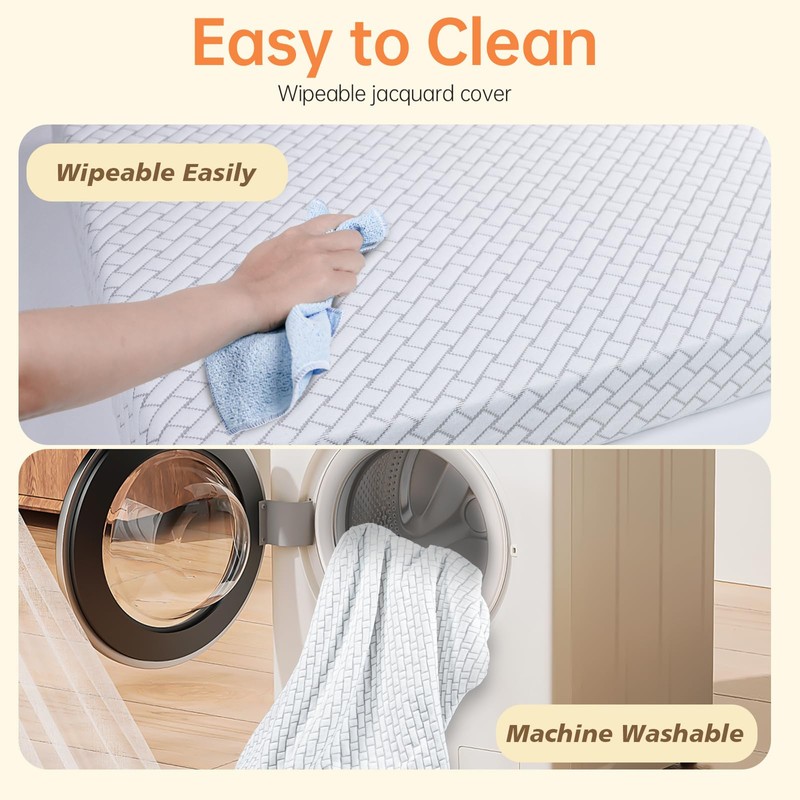 - Cover: Breathable, removable, and machine washable jacquard fabric
