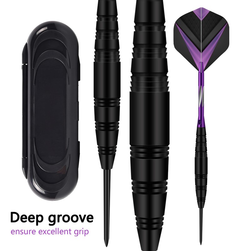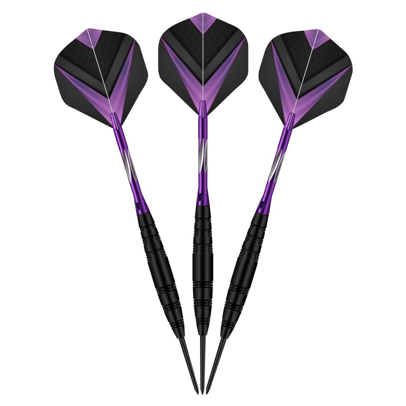 HRLORK 3 Packs Darts Set Professional Darts Set Steel Tip Aluminum Shafts Darts Stems and Flights with 3 Spare Shafts and Darts Case- Purple