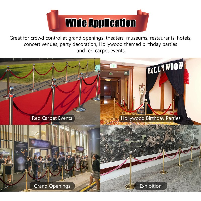 - 【 Upscale Means of Crowd Control 】 They are perfect solution for crowd control and decoration at movie theaters, wedding, car shows, museums, casinos, restaurants, hotels, bank, concert venues, grand openings, Hollywood themed birthday parties and red carpet events. And also can block off doorways, hallways, elevators, lifts, stairs and steps to restrict unauthorized access.