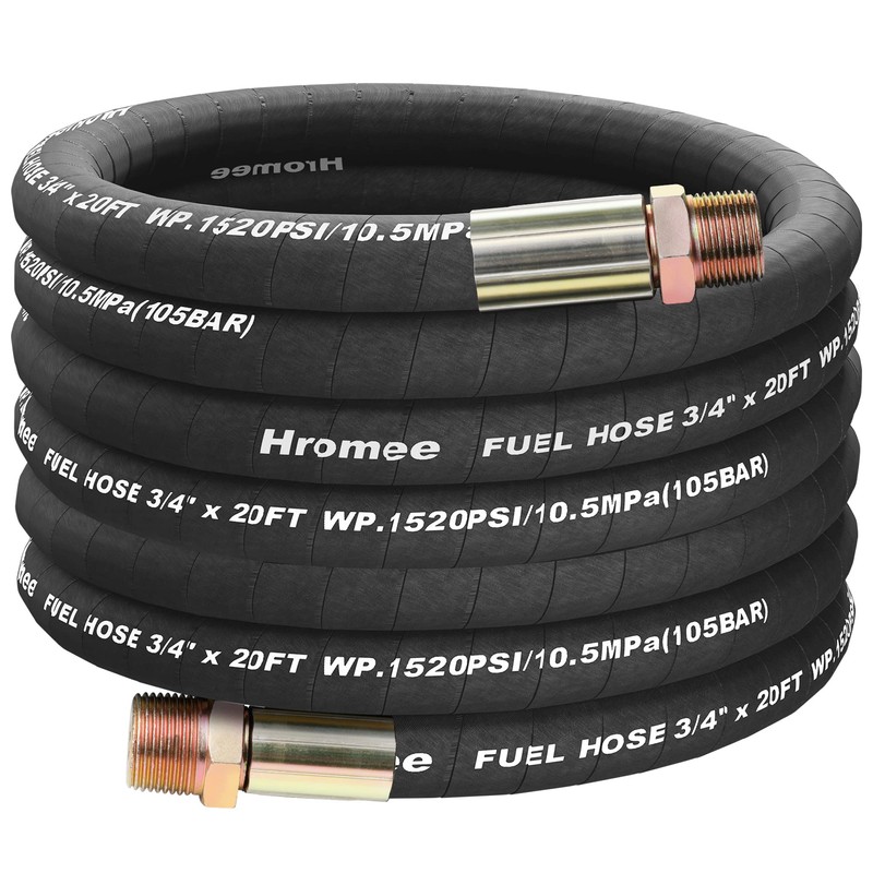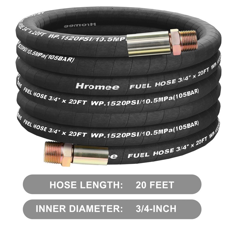 Hromee Fuel Transfer Hose, 3/4 Inch × 20 Feet Pump Hose with Male Fittings for Gasoline, Diesel, Biodiesel and Kerosene