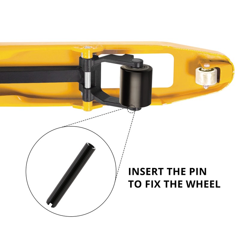 • Replacement of pallet jack wheels located towards the front of the pallet jack forks and fit most standard pallet jack trucks.