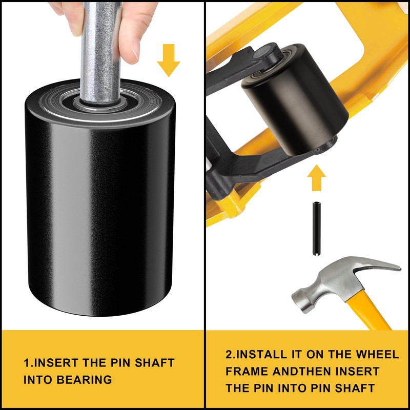 • A pair of pallet jack load wheels feature a high grade 95A durometer black polyurethane ensures good performance and lasting use.