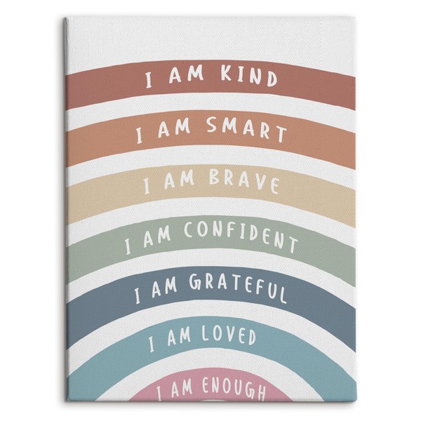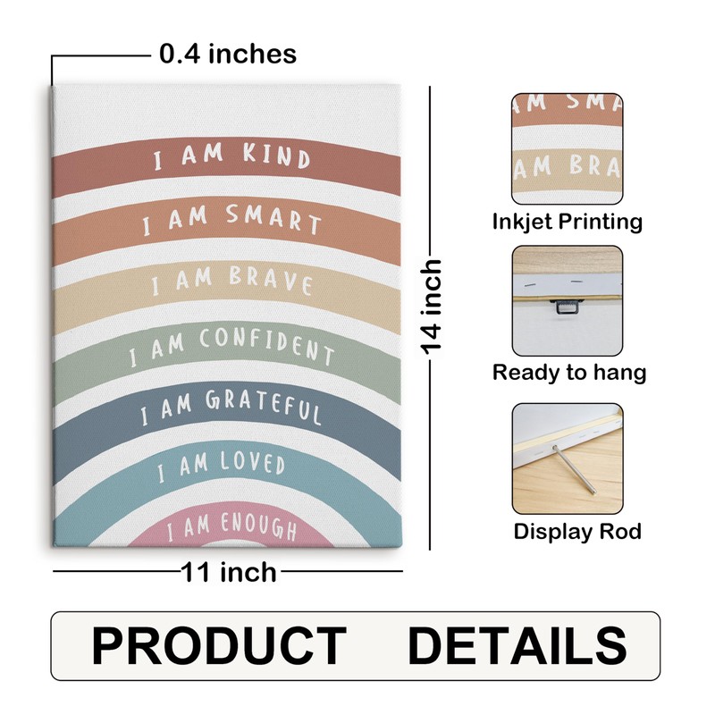 HRQKO Boho Inspirational I Am Kind Canvas Wall Art, Motivational Boho Rainbow Framed Art, Positive Affirmations Wall Decor for Kids Nursery Room Classroom Playroom, 11x14 inch