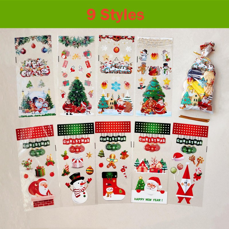 Hryxic 100 PCS Christmas Treat Bags,9 Styles Christmas Clear Cellophane Treat Bags,Santa Claus Goodie Candy Bags with Twist Ties for Party Favors Supplies
