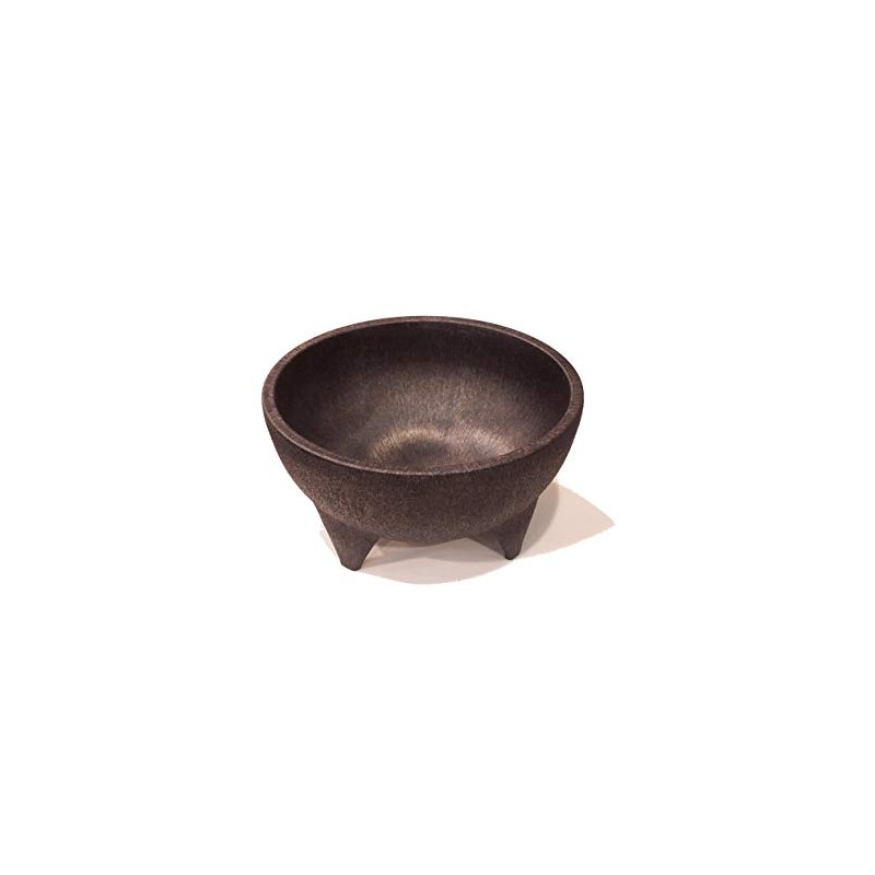 The traditional Mexican version of the mortar and pestle, this 224 ounce "Grandote" molcajete from HS Inc. features an authentic round design and is supported by stout feet. It has a charcoal-colored plastic construction, making it a safe, long-lasting, and easy-to-clean serving piece. The hand-held grinding tool, called the "tejolote", is used to crush and grind spices in the bowl. The molcajete is ideal for preparing salsa and guacamole recipes. The large capacity of this molcajete is perfect as a serving dish in restaurants for salads, ceviche, shrimp cocktail, and other sauces.