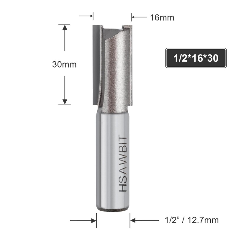 - hsawbit Straight Router Bits - 1/2 Inch Shank x 16mm Cutting Diameter x 30mm Cutting Length
