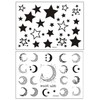 - 2 sheets of star and moon tattoos. Size: approx. 15 x 11 cm.