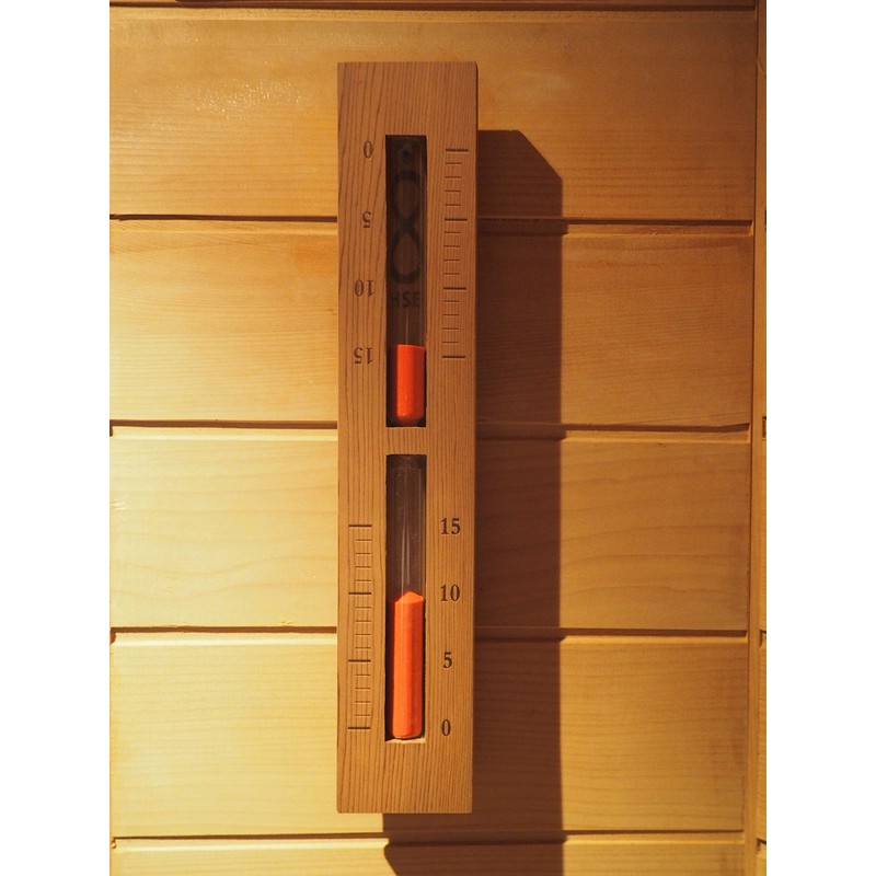 - 15 MINUTES - A popular length of time to enjoy a sauna session. Also includes approximated minute markers for finer detail. 15-minute hourglass is accurate to within 60 seconds.
