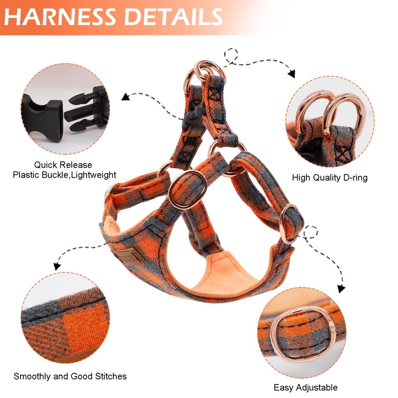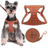 HSIGIO Dog Harness and Leash Set, Plaid No Pull Cat Harness and Leash, Soft Adjustable Puppy Harness for Extra Small Medium Dogs, Cats(Orange Plaid, XS)