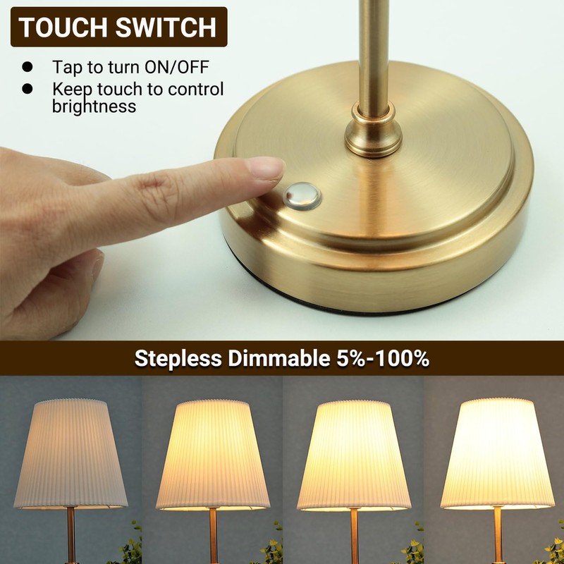 - Touch Dimming Bedside Lamp: Unlike traditional lamps, the battery operated lamp features stepless dimming from 5% to 100%, letting you adjust brightness precisely for any setting. The night light remembers your last setting for convenience. Whether you're creating a cozy ambiance or need focused light for work or reading, this desk lamp delivers with a simple touch, enhancing your environment effortlessly. Transform your lighting experience at home or on the go with intuitive touch control.