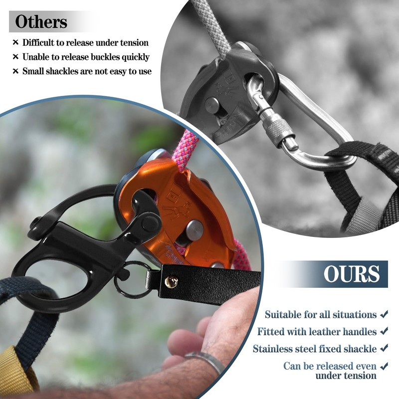 • Comfortable Leather Handles: Boasting 4.5-inch genuine leather grips, they offer a secure and comfortable hold. The sailing rigging shackles are easy to manipulate, even when wearing thick gloves
