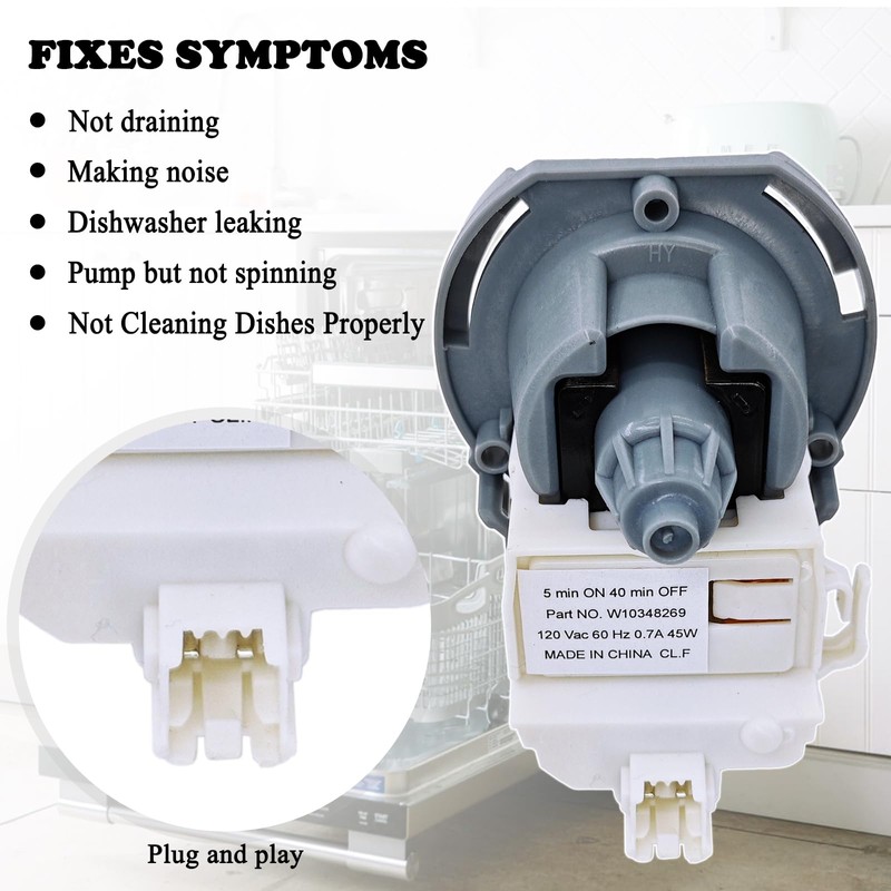- PREMIUM QUALITY: This dishwasher drain pump is Made from high-quality materials, features durability and reliability, ensuring a quieter, more stable, long-lasting effective performance for your dishwasher.
