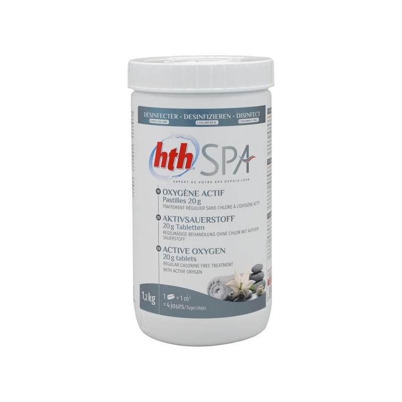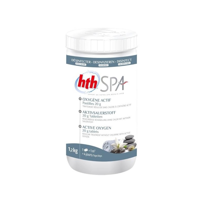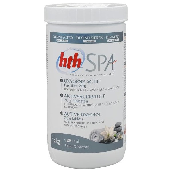 HTH Spa Oxygen Active Tablets 20g - 1.2kg | Regular Disinfection Without Chlorine - Fast Resolution + 10 HPS Tests Free 6 in 1