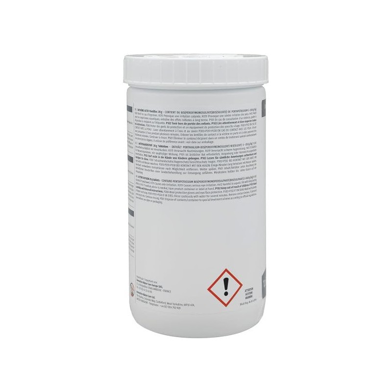 - Product "without active chlorine" therefore without production of disturbing derivatives (chloramines, stabilisers)