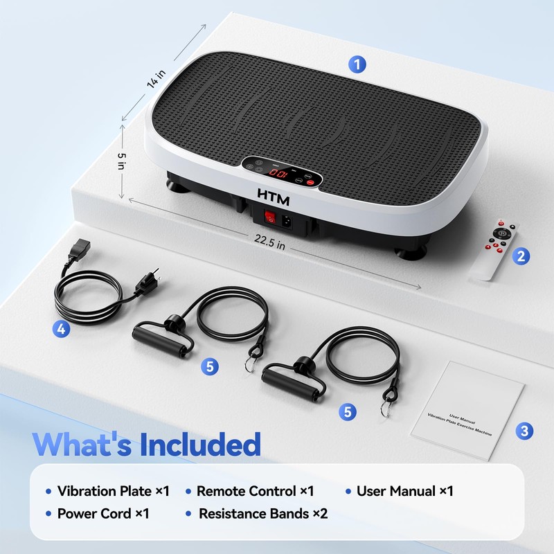 HTM Vibration Plate Exercise Machine - 330lbs Weight Capacity, 120 Speed Levels, 5 Program Modes - Full Body Workout for Home Fitness, Toning & Wellness, LED Display, Low Noise Motor