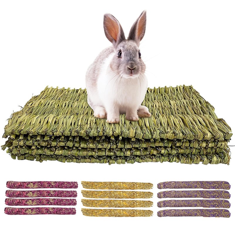 - Box contents: 4 grass mats, 12 thyme hay sticks for hamsters, gerbils, squirrels, rabbits, mice or other small animals for sleeping, playing, resting and chewing