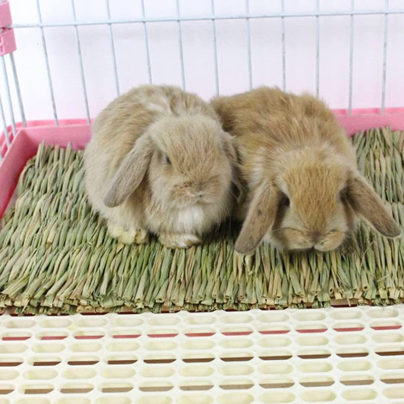 - NATURAL MATERIALS The grass mat is hand-woven from natural reeds. The rest of the chew toy is made of high quality lieshgrass hay, which is covered with petals and exudes a light floral fragrance. The hay sticks made of lieschgrass provide a unique aroma with three floral fragrances, environmentally friendly and non-toxic, absolutely safe for pets to sleep and chew