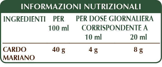 Il cardo mariano favorisce la funzione epatica, promuove la funzione digestiva, coadiuva le funzioni depurative dell'organismo e svolge una benefica azione antiossidante. Prodotto con etichettatura in lingua italiana. Codice Farmadati: 970448799.