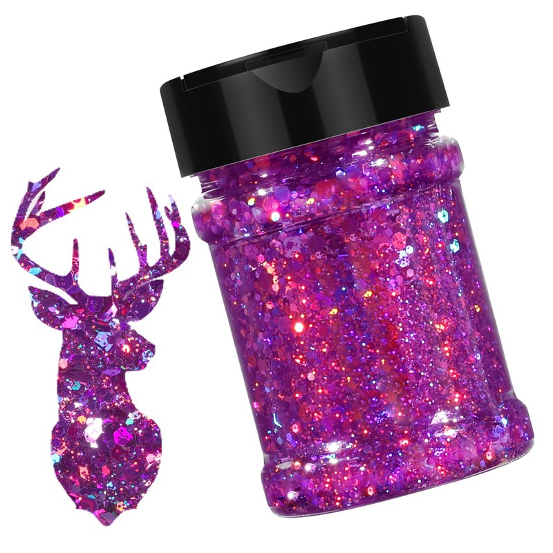 HTVRONT Holographic Chunky Purple Glitter - 100g Glitter for Crafts, 3.53oz Iridescent Glitter for Resin, Non-Toxic Chunky Mixed with Fine Glitter for Nails, Tumbler, Makeup, Hair, Body Glitter