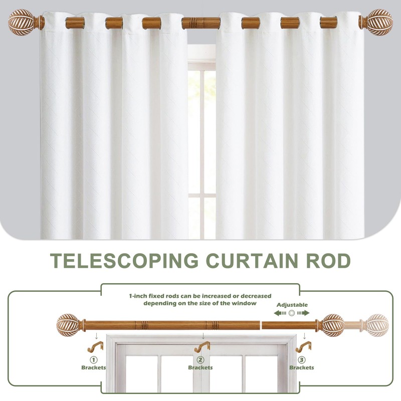 HTZON Wood Boho Curtain Rods for Windows:Wooden Farmhouse Decorative Curtain Rod for Bedroom Living Room,Heavy Duty Adjustable Rustic Bamboo Drapery Rods with Imitation Wood Grain Finials,Brown 36-72"
