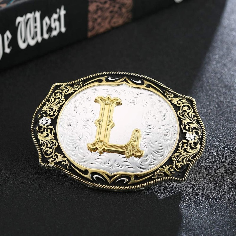 HUABOLA CALYN Western Belt Buckle Initial Letters ABCDMRJ to Z Cowboy Rodeo Small Gold Belt Buckles for Men Women (L)