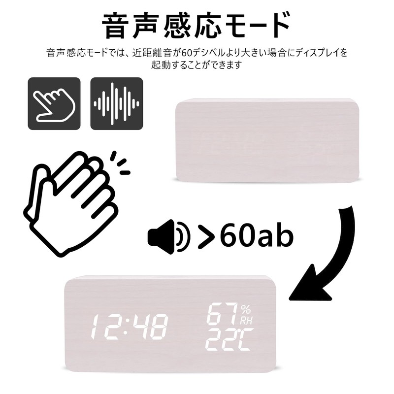 - (Voice Sensitive Mode & Adjustable Brightness) In the voice response mode, you can activate the display when near-range sound is larger than 60 decibels. At the same time, the brightness of the digital display can be adjusted
