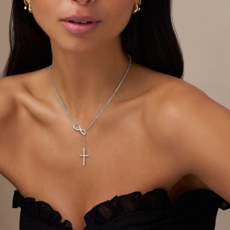 - DESIGN: This elegant sterling silver necklace features a meaningful combination of infinity and cross symbols, creating a stunning Y-shaped design that captures eternal faith and devotion.The delicate chain complements the pendant perfectly, making it an ideal piece for both everyday wear and special occasions.