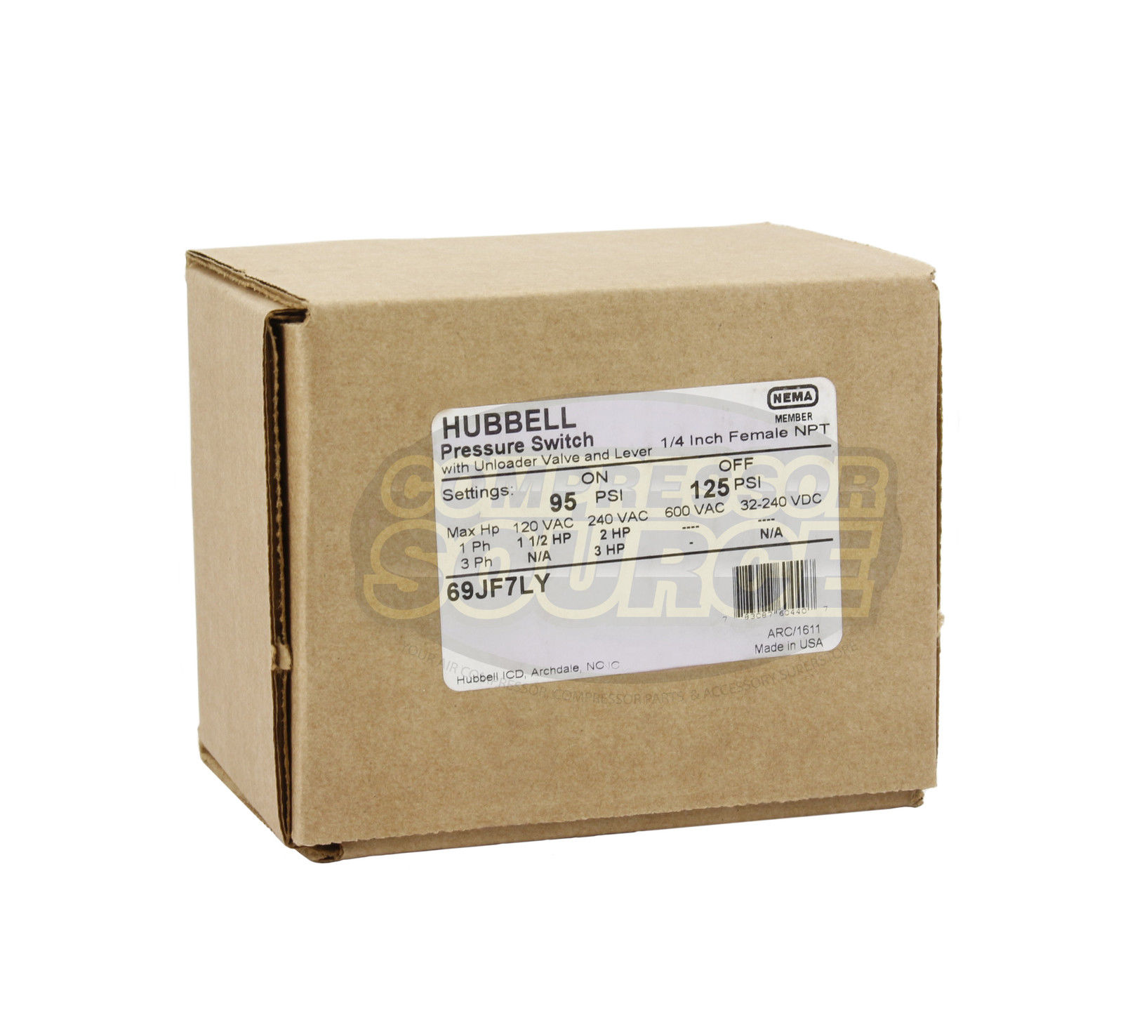 SIGN UPHubbell 69JF7LY Furnas Air Compressor Pressure Switch Control Valve 95-125 PSI