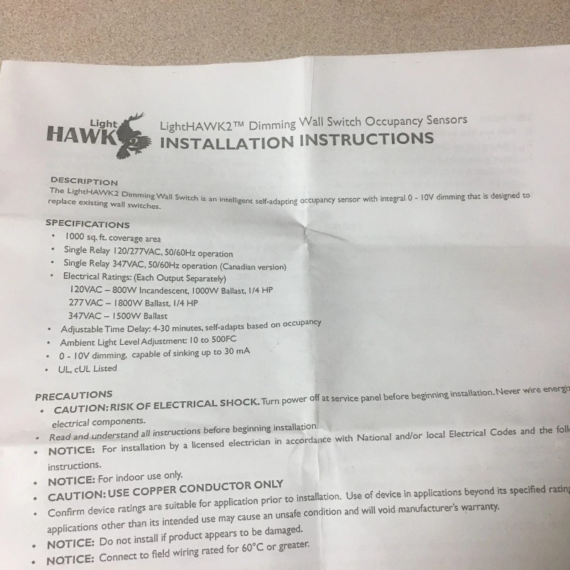 HUBBELL LHD-IRS3-N-LA LightHAWK PIR Wall Switch Occupancy Sensor Almond