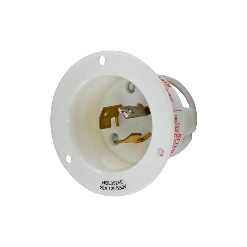 Hubbell Wiring Systems Locking Devices, Twist-Lock, Industrial, Flanged Inlet, 20A 125/250V, 3-Pole 3-Wire Non-Grounding, Non-NEMA, Screw Terminal, White