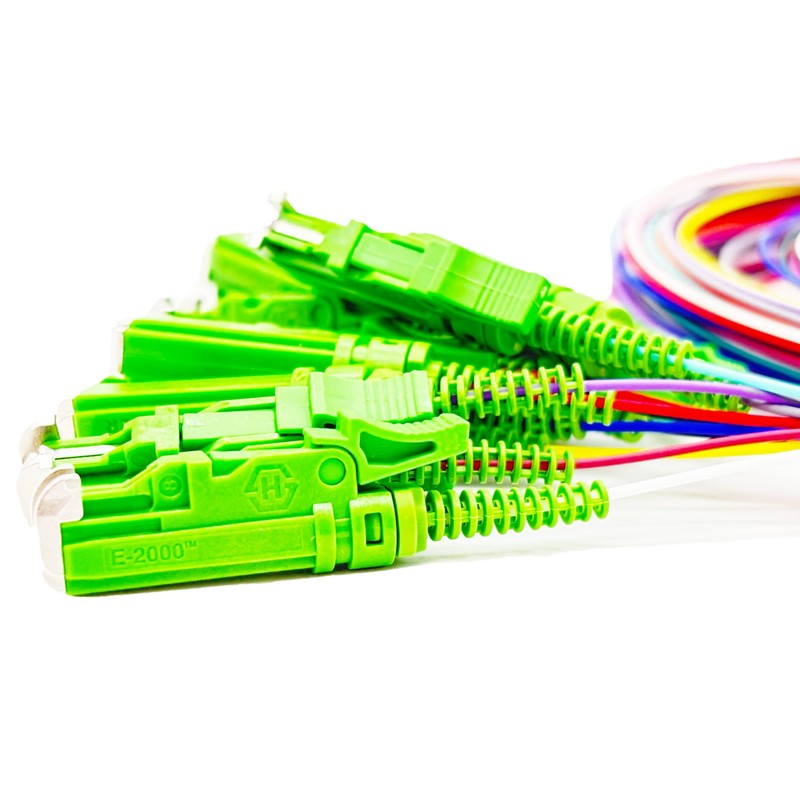 - Hochwertiges Markenprodukt – HUBER+SUHNER Glasfaser Pigtail Set mit 12x E-2000/APC Steckern.