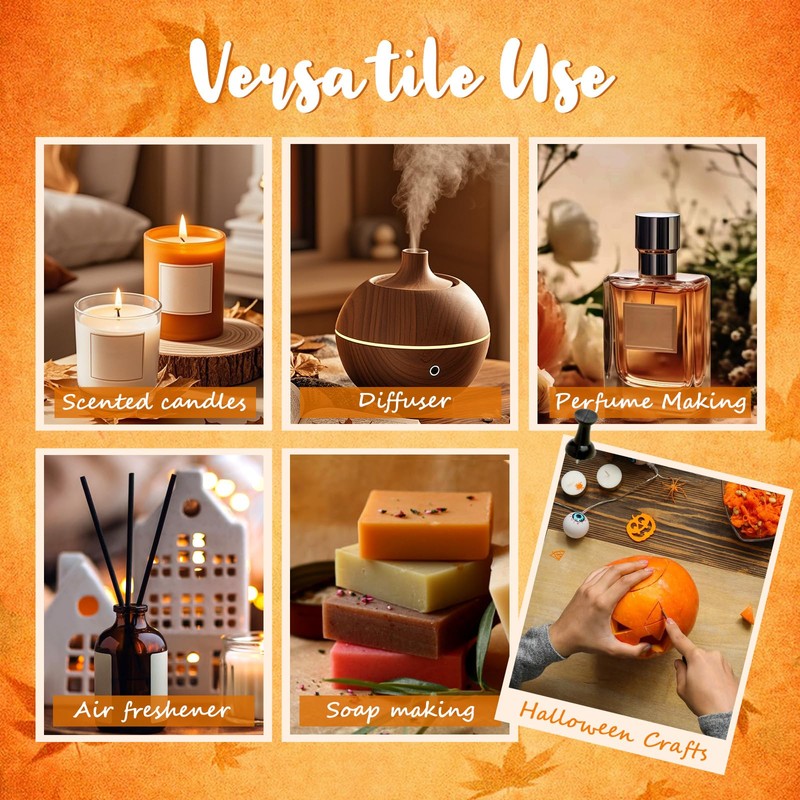 - Perfect for Seasonal Aromatherapy & Crafting:Ideal for creating autumn-themed candles, soaps, bath bombs, or massage oils, this vibrant fruity blend adds a cheerful yet sophisticated touch to your DIY projects, infusing them with the bright heart of the harvest season.