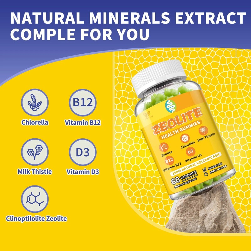 - Liver and Immune Support: This zeolite extra strength gummy is rich in vitamin B12, vitamin D3 and milk thistle, which helps maintain a healthy acid-base balance and vitamin balance while strengthening the body and enhancing immunity. Zeolite Gummy Supplement is perfect for men and women seeking healthy gut, healthy liver and immune support, giving you a healthier and more energetic life!