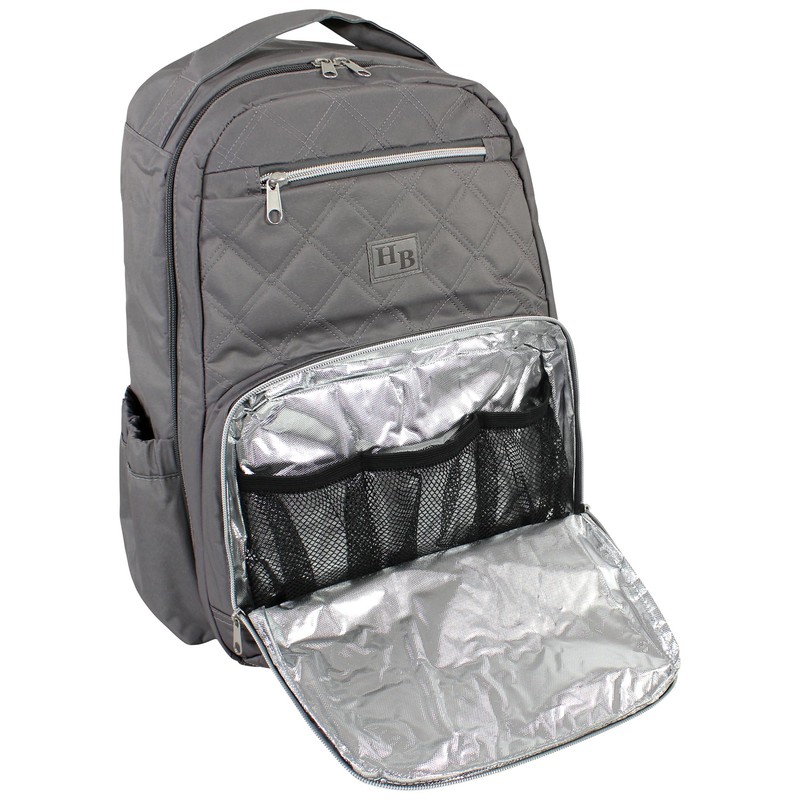 - Insulated pocket is ideal for bottles; padded straps are adjustable; durable exterior fabric