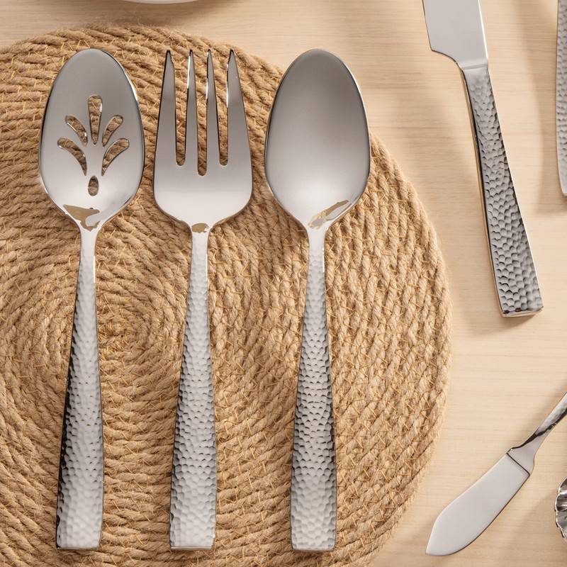 • Hammered 6-piece hostess serving spoon set: includes 2 serving spoons, 2 slotted serving spoons, 2 serving forks