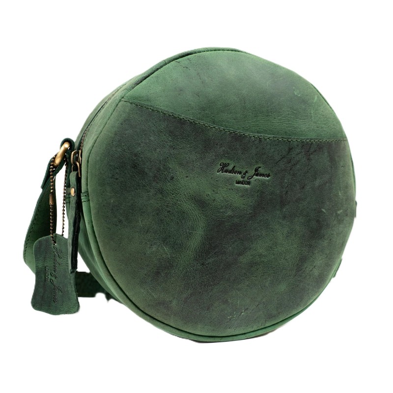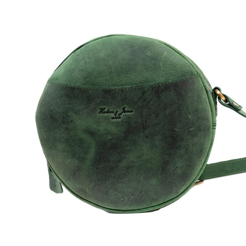 Hudson & James Designer Genuine Leather Women Ladies Circle Travel Satchel Everyday Crossover Cross body Shoulder Handbag Bag (Distressed Green)