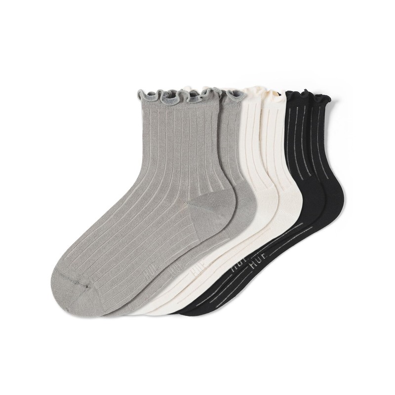 HUE Women's Sheer Rib Anklet 3 Pair Pack, Assorted: Drizzle/Ivory/Black, One Size