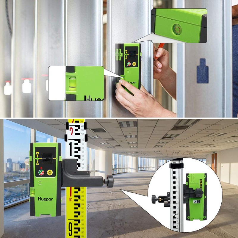 - ✔️AVAILABLE FOR RED AND GREEN PULSE LASER- It is necessary to Turn ON the Pulse Mode of the laser level when using with Huepar LR-6RG laser receiver. This receiver allows detection of Red and Green pulse laser beams in difficult light conditions, distances up to 200ft (60m).