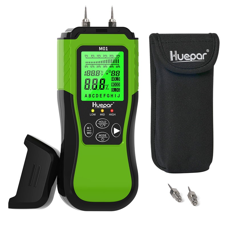 Huepar M01 Digital Wood Moisture Meter, Moisture Meter, Building Material Measurement, Firewood, Moisture Meter, LCD Display, Hold Function, Moisture Content Meter, Japanese Instruction Manual Included