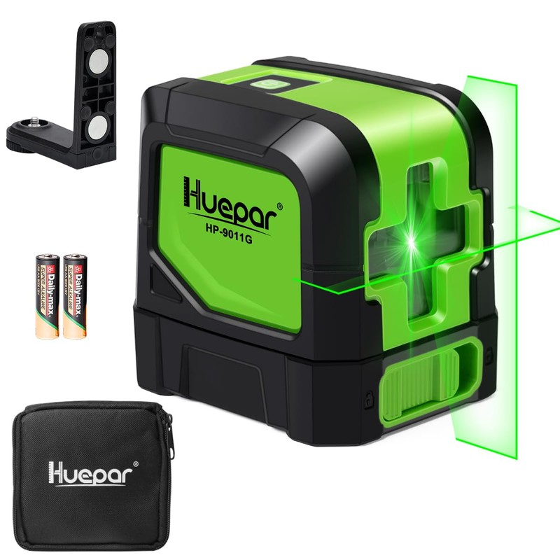 Huepar Professional Cross Laser Level Line with 360° Magnetic Pivoting Base, DIY Laser Level Self Leveling, Green Lines with 100Ft Visibility Horizontal and Vertical Line Level 9011G